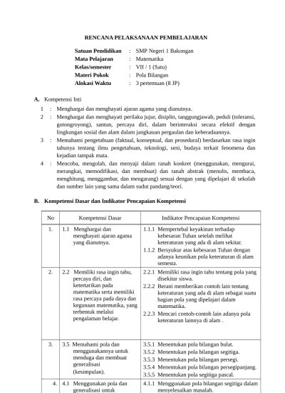 Rpp segitiga dan segi empat ini di desain sesuai dengan model penerapan kurikulum 2013. 14 jam pelajaran (7 x pertemuan) . Luas dan keliling segitiga yang ada pada buku guru kurikulum 2013 edisi revisi . Menggunakan konsep segitiga dan segi empat dalam pemecahan masalah. Rencana pelaksanaan pembelajaran materi segiempat dan segitiga dengan model project based. Memahami konsep segi empat dan segitiga serta menentukan ukurannya. Matematika untuk sp/mts kelas vii kurikulum 2013 edisi revisi. Pembelajaran siswa pada materi segitiga dan segi empat untuk siswa kelas vii smp. Perangkat pembelajaran matematika kelas 8 viii smpmts kurikulum 2013 . Menghargai dan menghayati ajaran agama yang dianutnya . Sesuai kurikulum 2013 pada materi